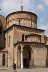 Vedle dómu vpravo je baptistérium, čtyřboká půvabná stavba z pálených cihel z 13. století, s kuželovitou kopulí. Uvnitř se dochoval jeden z nejúplnějších středověkých syklů fresek, které v roce 1378 namaloval Giusta de Menabuoi. Jsou na nich biblické příběhy, např. Stvoření, Zázraky, Umučení, Ukřižování a Zmrtvýchvstání Krista a Poslední soud.